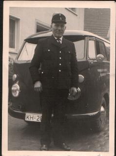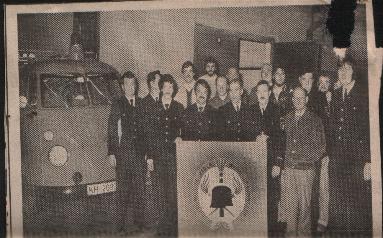 Das 1.Feuerwehrfahrzeug ein VW-Bus mit einer Truppbesatzung.