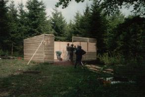 Bau der Waldhütte an der "Alten Eiche" im Heegwald: