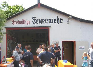 Das Feuerwehrgerätehaus am Wallhäuserweg.1. Es ist der Hauptsitz der Feuerwehr seit 1975. Damals stand aber nur die Fahrzeughalle. Der Anbau(Schulungsraum) wurde im Jahre 1994 erbaut.